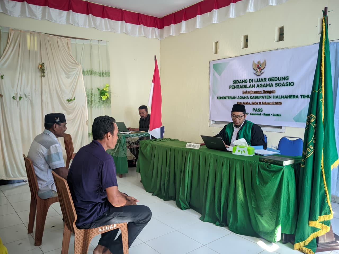 Maba, 11 Februari 2026, Tim Sidang di luar gedung Pengadilan atau sidang keliling Pengadilan Agama Soasio kembali memberikan pelayanan kepada masyarakat Halamhera Timur - Maba. Mendekatkan pelayanan hukum kepada masyarakat, mewujudkan peradilan yang sederahana, cepat dan biaya ringan serta mengatasi hambatan transportasi, jarak dan biaya. ini merupakan tujuan dari sidang diluar gedung pengadilan yang telah di terapkan oleh Pengadilan Agama Soasio.